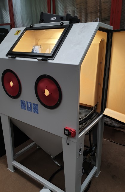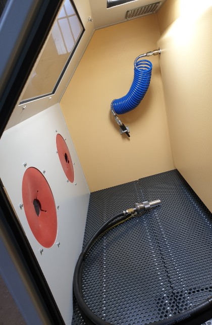 A "Widder" típusú injektoros szemcseszóró kabinok kis és könnyű alkatrészek szórására javasoljuk. Ezek a kabinok nem asztali, hanem lábakon álló kabinok, de a kezelhetőségük és használhatóságuk megegyezik az asztali kabinokéval. A speciális kopásállóságú sárga gumi megakadályozza, hogy a szóróanyag a konténer falát szükségtelenül elkoptassa, emellett zajcsökkentő hatása van és optimális látási viszonyokat teremt. A szóróanyag megtakarítás akár 50% is lehet.